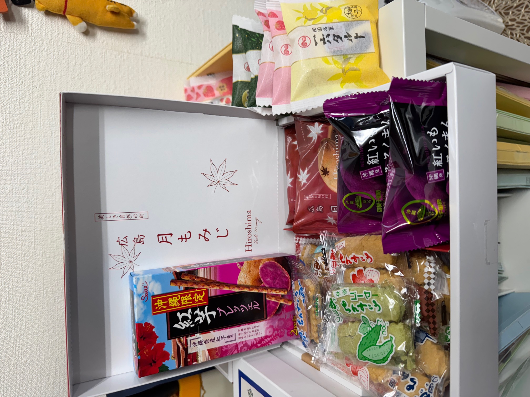 そして…なんと! 素敵なお土産までいただきました!!「みんなでどうぞ!」とたくさんのお菓子をいただき、事務所スタッフも大喜び!事務所の お菓子コーナー も大充実で、さらに賑やかになりました(笑)