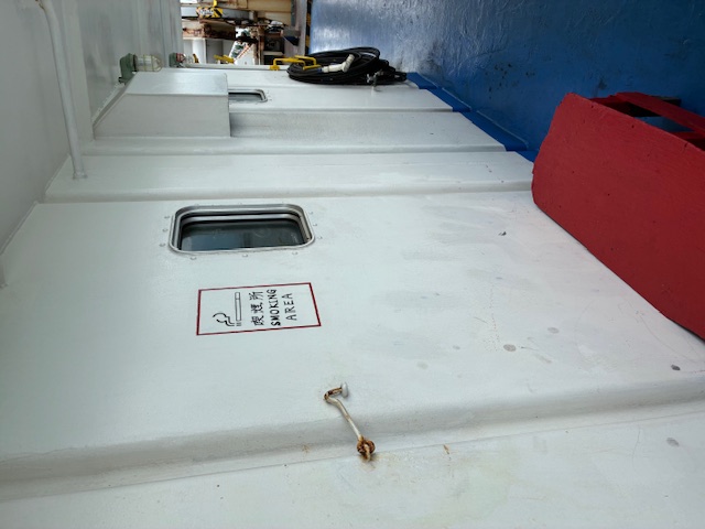 Instagramでも少し触れましたが、弊社では分煙を徹底しており、本船にもきちんと喫煙スペースを設けています