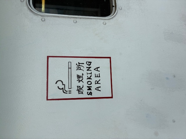 なんと、乗組員さんが自ら喫煙スペースのマークを“手描き”で仕上げてくださっていたのです!