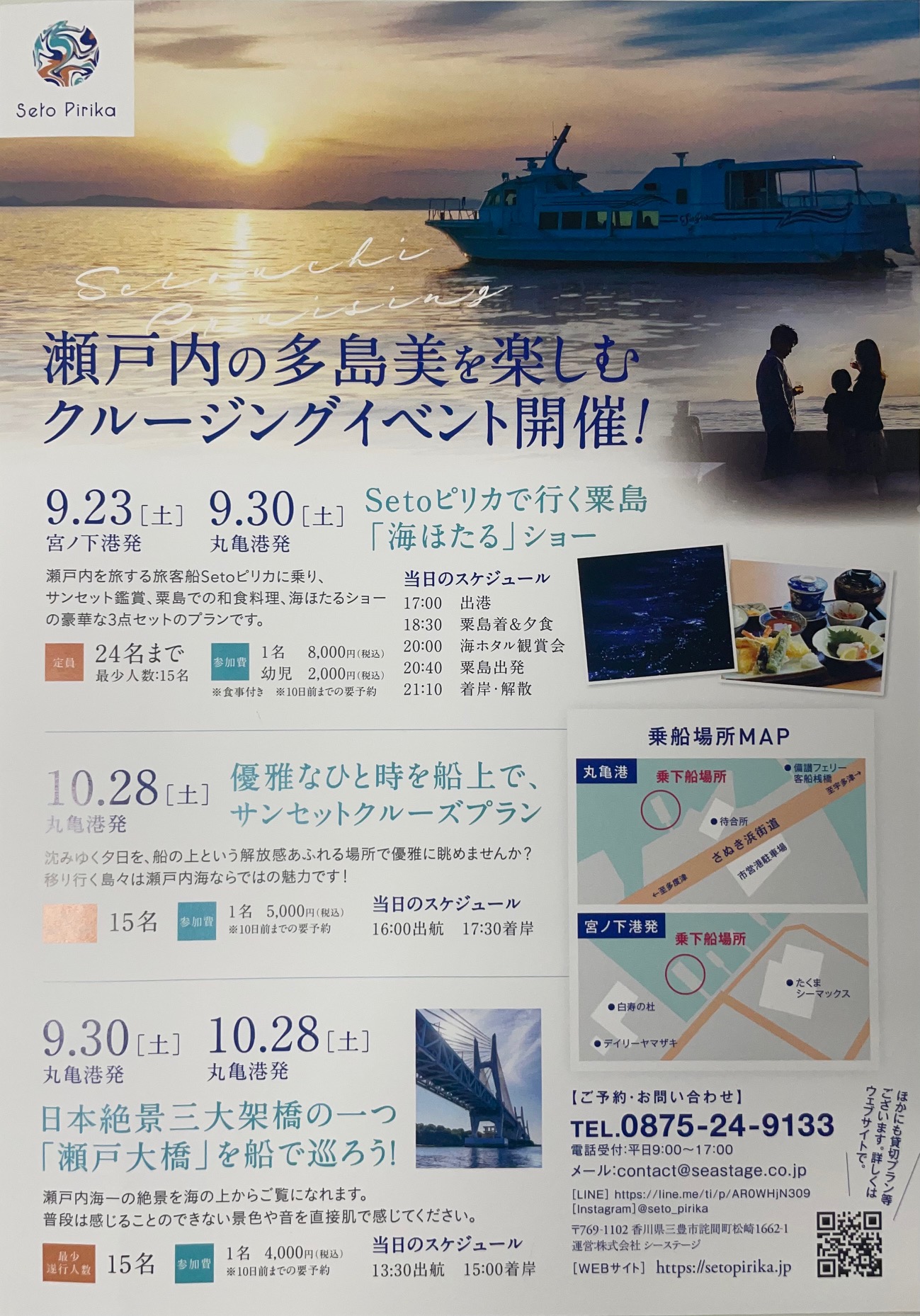 香川県三豊市にある粟島で海ほたるが見れるツアーを開催することになりました。サンセットクルージング、粟島にあるル・ポール粟島での食事、2代目海ほたるおじさんの解説付き海ほたるショーと魅力たっぷりです。気になる方はぜひお問い合わせください。