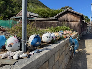 こちらは、使わなくなった船のウキを利用して、かわいく絵を描いている作品です。
