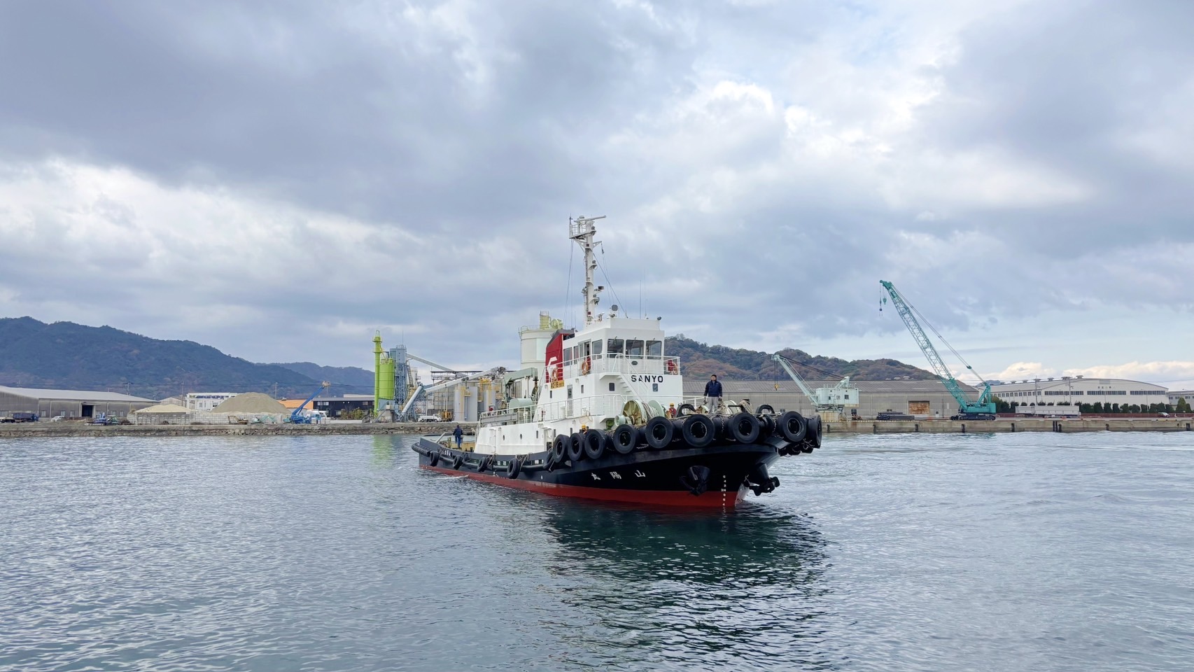 昨日に引き続き、タグボート「山陽丸」が無事に詫間港に帰港しました
