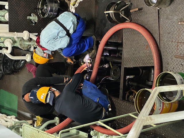 今回はその作業の様子を確認するとともに、機関室のビルジの抜き取りなど、他の整備作業にも立ち会いました
