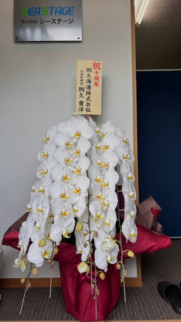 そんな中、長年お付き合いのある「則久海運株式会社」様より、心温まるお祝いとして立派な胡蝶蘭を頂戴いたしました