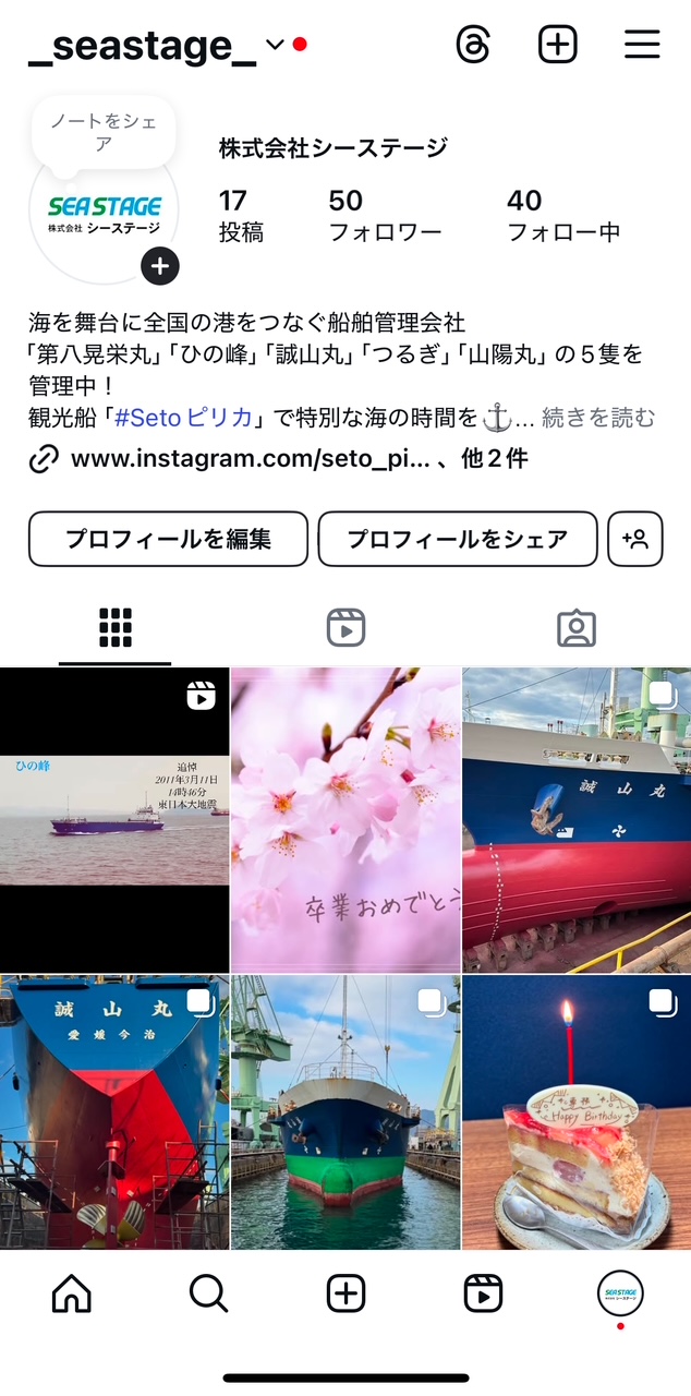 ちなみに……シーステージのInstagramのフォロワー数が50人突破しました