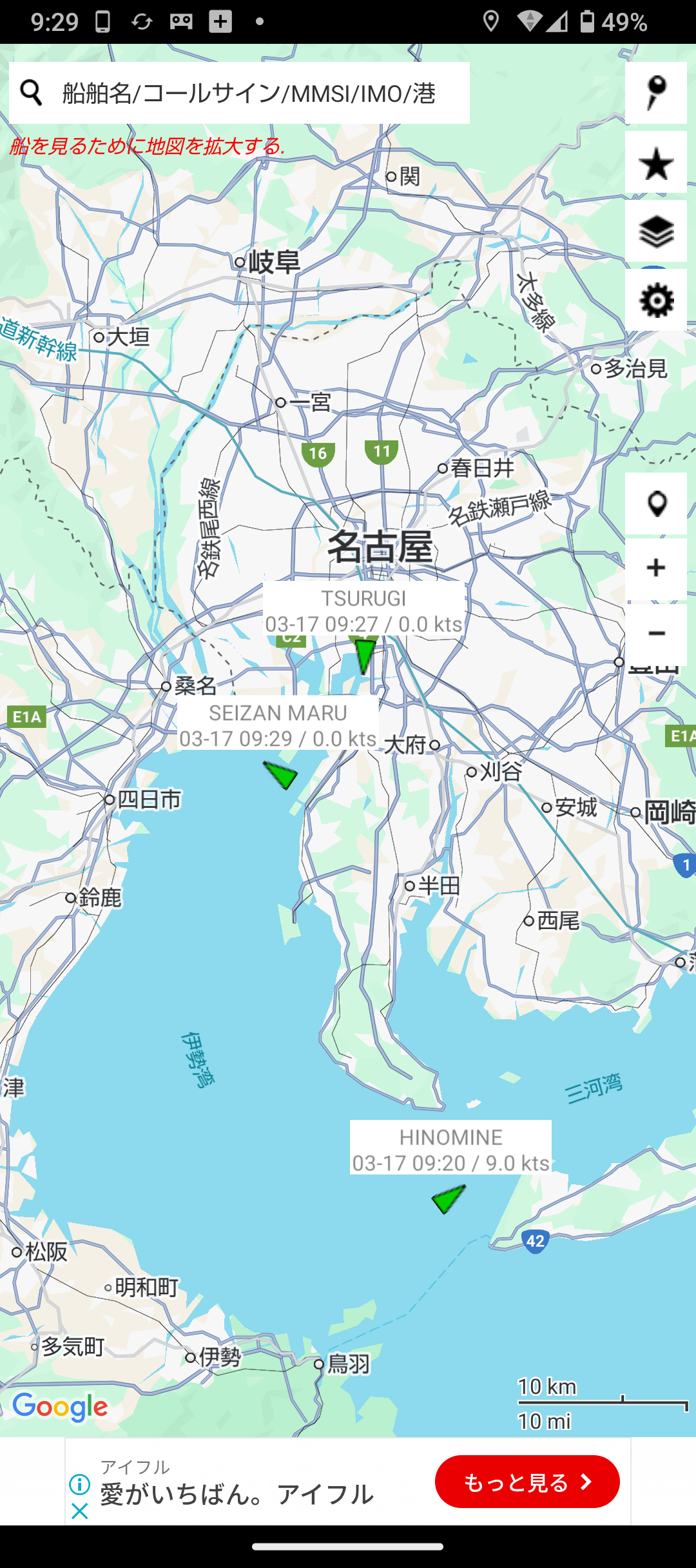 「ひの峰」はいつもは瀬戸内海をメインに運航していますが、時々名古屋や東京方面へ荷物を運ぶこともあります。