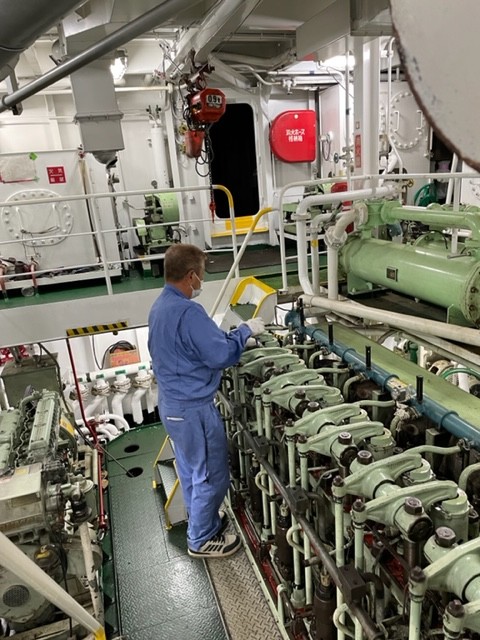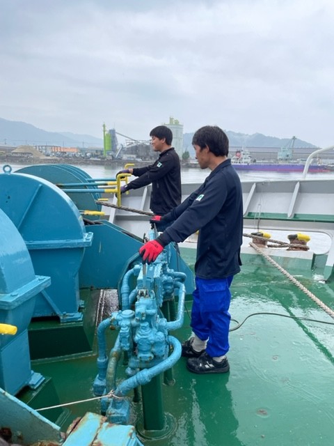 ダンネージ等、資材をを片付ける作業がありますが、フォークリフトを搭載していたり、作業軽減や効率化できるように乗組員全員で取り組んでおりますので比較的作業は軽減できております。長距離輸送が比較的多いので航海時間は長くなり、安定して航海を取って頂くことができます。